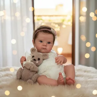 Muñeca bebé reborn con aspecto muy realista. - Pelo injertado. - Ojos azules. - Incluye peluche.pesa 1 kilo y mide unos 42 cm cuerpo entero de vinilo silicona.