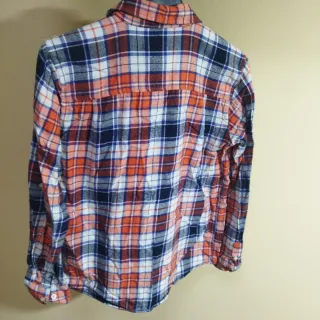 Camisa de cuadros para niño, con un diseño llamativo en tonos naranjas, azules y blancos. - Cuello camisero. - Cierre de botones. - Manga larga. Las mangas lleva precillas para recogerselas
