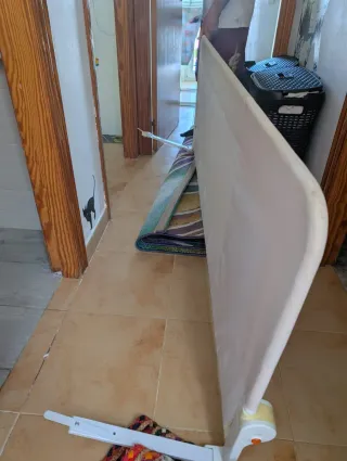 Barrera de seguridad para cama infantil con un diseño tierno de osito y estrellas. - Tejido blanco con estampado. - Estructura de metal y malla. - Mecanismo de fijación a la cama. Medidas: 1,79 cm x 60 cm NO ENVÍO, SOLO RECOGIDA