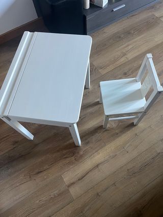 Conjunto de escritorio y silla infantil de color blanco. Ideal para que los más pequeños tengan su propio espacio. - Diseño sencillo y funcional. - Acabado en blanco.