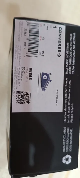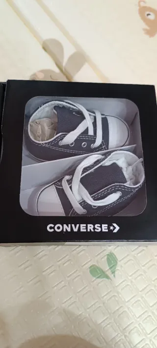 Zapatillas Converse para bebé, color azul marino con detalles blancos y cierre de cordones. - Talla 17. - Cierre de cordones blancos. - Suela de goma blanca. - SIN ESTRENAR - En embalaje original.