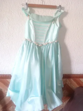 Vestido de niña en tono azul claro, ideal para comunión o eventos especiales.30 de sisa, 81 de alto - Diseño estilo princesa. - Cuerpo con detalles de encaje y lazada. - Falda amplia y vaporosa. - Adornos de volantes en la cintura y bajo. Falta cambiar cremallera, también lo puedo hacer yo' ajustando menos su precio, subiría diez e.u. más)