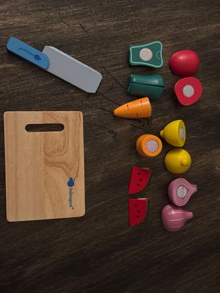 Set de juguetes de madera para cortar frutas y verduras. - Incluye 14 piezas. - Marca: Itsimagical. - Modelo: Deliset Fresh. - Edad recomendada: 3+ años.