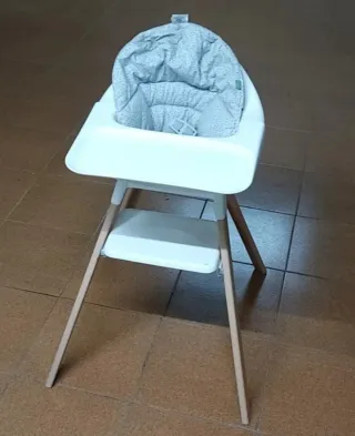 Trona Stokke desmontable con patas de madera maciza. Es un asiento cómodo y seguro para los más pequeños. - Patas de madera maciza. - Diseño desmontable.