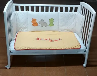 Cuna de madera con colchón