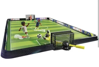 Set de futbolín de Playmobil Sports & Action. - Incluye figuras de jugadores y portería. - Campo de juego con detalles. - Apto para niños de 5 a 99 años. - 63 piezas. No tengo la caja de cartón, pero sí todas las piezas!
