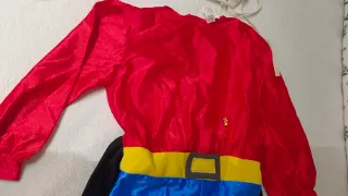 Disfraz de superhéroe (ningún superheroe en concreto). Pone talla 0, parece como para alrededor de un año. Mono con pantalón corto y parte superior manga larga roja, con cinturón amarilo. Cubrebotas rojas. Incluyo pantalón largo negro, talla 2. Misma marca Disfraces Josman, fabricado en su día en España. Más una armadura de plástico. La ropa tiene años, pero está en buen estado, sin signos de uso. El escudo tiene las gomas dadas. Carnaval. Fiestas. Niños. Bebés.