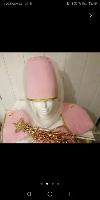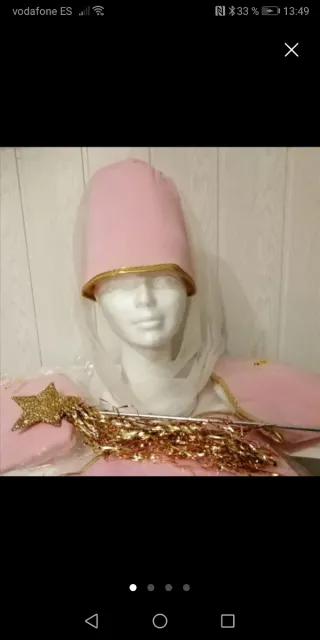 Gorro de hada de estilo medieval, en color rosa con detalles dorados.Tejido espuma y gasa, se, adapta a, diferentes diámetros de cabeza con muy buena adherencia. Varitas a parte. Con espumillon 2,euros sencillas 1 euro - Diseño alto y cónico. - Borde decorativo dorado. - Ideal para disfraces o eventos temáticos.