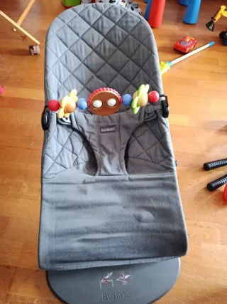 NO SE HACEN ENVIOS, SÓLO ENTREGA EN PERSONA. Hamaca para bebés de la marca BabyBjörn en color gris. Es cómoda y segura para los más pequeños. Precio negociable. - Diseño acolchado. - Barra de juegos con figuras. - Base estable.