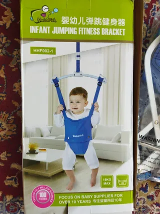 Columpio para puerta de bebé. Usa gancho para sujetarse a marco superior. Se puede llevar de viaje. Está como nuevo, tiene muy poco uso. La caja es lo único que está un poco roto. No tiene ningún desperfecto. - Peso máximo: 16 kg. - Instrucciones de lavado: 30 grados. - Diseñado para la seguridad y el desarrollo infantil.
