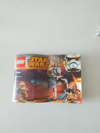 Manual de instrucciones para el set de Lego Star Wars 75089. - Incluye instrucciones para construir el set. - Muestra las figuras y el vehículo del set. - 2 de las piezas son de otro color, pero eso no impide el poder montar el vehículo, que funcione, se articule.... también falta uno de los muñecos de ahí el precio
