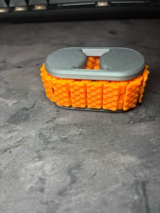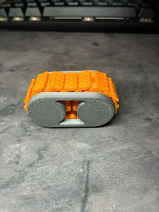 Cadena fidget con un diseño llamativo en naranja y gris. Ideal para mantener las manos ocupadas. - Diseño texturizado en naranja. - Partes superiores en gris. - Compacto y portátil.