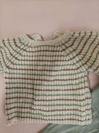 Conjunto de ropa para bebé, ideal para mantenerlos abrigados y cómodos. - Jersey de punto con rayas en tonos verde y beige (zara) - Polaina a juego en color verde. (Corte la etiqueta)