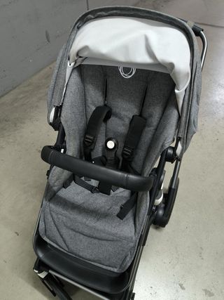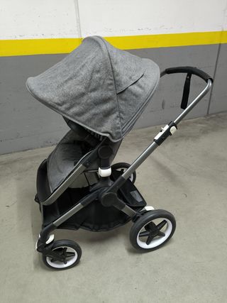 Silla de paseo Bugaboo Fox3 en color gris. Diseñada para ofrecer comodidad y maniobrabilidad. - Capota extensible. - Manillar ajustable. - Ruedas todoterreno. - Funda lluvia - Capazo - Silla de paseo - Organizador gris incluido