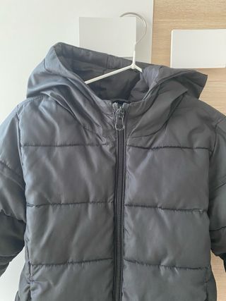 Abrigo tipo plumón para niña en color negro. - Capucha integrada. - Cierre de cremallera. - Bolsillos laterales.