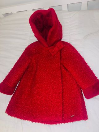 Abrigo de niña de la marca Mayoral en color rojo. Solo puesto en ocasiones. En perfecto estado. Talla 24. el tallaje de Mayoral es completo.