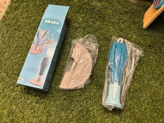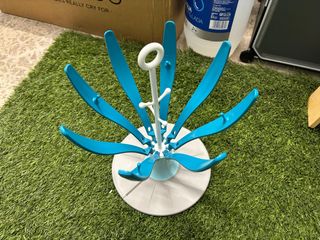 Práctico escurrebiberones de la marca Beaba, diseñado para facilitar el secado de biberones y accesorios. - Diseño en forma de flor. - Color azul y blanco. - Base estable.