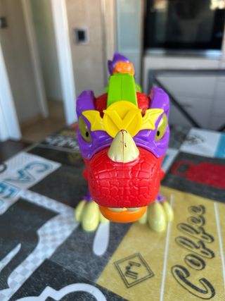 Divertida jirafa de juguete de colores vivos. - Diseño llamativo con estampado de manchas. - Base verde y detalles naranjas. - Ideal para el desarrollo infantil.