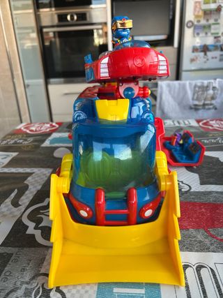 Camión de juguete Superthings con figura. - Camión de rescate de color azul, rojo y amarillo. - Incluye una figura de Superthing. - Pala frontal. - Cabina transparente. Sin caja