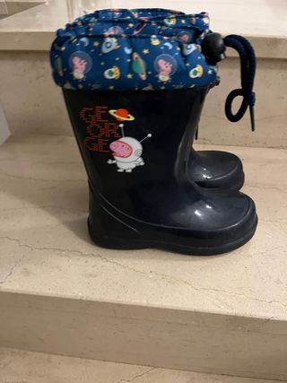 Botas de agua infantiles con diseño de George Pig. - Talla 28. - Estampado espacial con planetas y naves. - Forro interior con cordón ajustable.