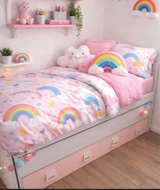 Cama nido con dos camas y dos cajones, medidas de la cama 2metros de largo x 96 de ancho, se vende con un colchón y una estantería de los mismos colores que la cama