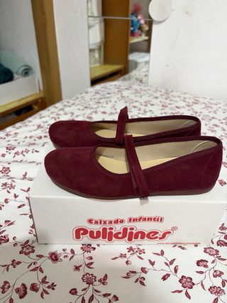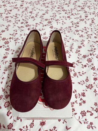 Bonitos zapatos tipo bailarinas en color rojo. Talla 34 - Cierre de velcro. - Material exterior de ante. - Suela flexible.