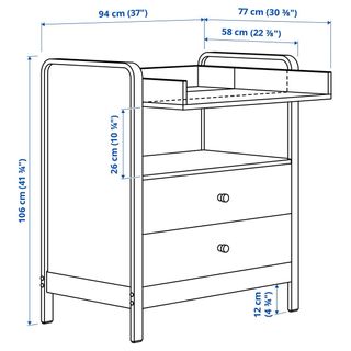 Cómoda con cambiador en tonos madera de abedul y blanco. Un mueble funcional y con un diseño moderno. - Estructura principal en blanco. - Detalles y patas en madera de abedul. - Dos cajones con tiradores redondos. Comprado hace 1 mes, vendo por que me han regalado otra cómoda. Nuevo sin uso