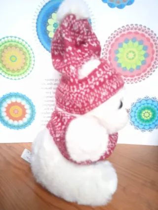 Adorable peluche de oso blanco, perfecto para coleccionar o regalar a tu hija/o, o a alguien especial. Viene vestido con un conjunto invernal. - Oso de peluche suave. - Incluye gorro y bufanda a juego con diseño de punto. - Color blanco del oso con detalles rojos en el atuendo. *El peluche mide 13 cm sin contar el gorro*