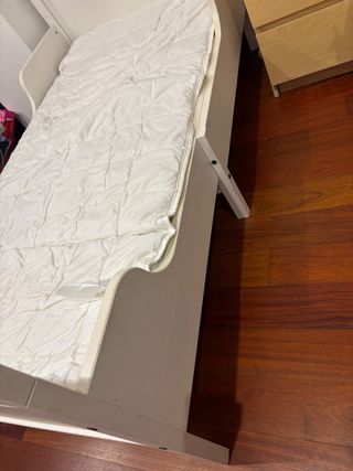 Cama extensible de IKEA, ideal para adaptarse a las necesidades de crecimiento. - Estructura blanca. - Incluye colchón.