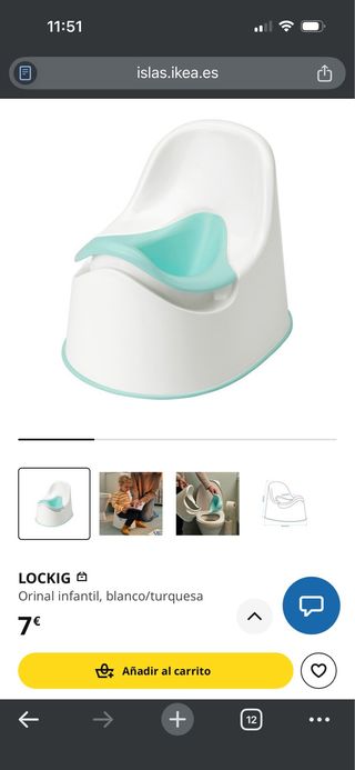 Orinal infantil LOCKIG de Ikea en color blanco y turquesa. NUEVO SIN ESTRENAR. - Diseño ergonómico para mayor comodidad. - Fácil de limpiar.