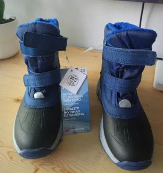 Botas de nieve para niños en color azul. Perfectas para mantener los pies calientes y secos en climas fríos. - Cierre de velcro. - Forro interior de pelo sintético. - Suela de goma antideslizante.
