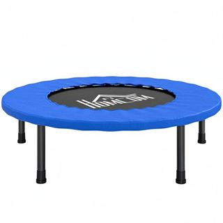 Cama elástica de fitness HOMCOM a estrenar. Ideal para ejercicios de interior y exterior. Este trampolín de acero de 81 cm de diámetro soporta hasta 100 kg. Cuenta con 28 resortes de alta elasticidad para un rebote óptimo y un borde protector de PVC para máxima seguridad. El robusto marco de acero y las 6 patas antideslizantes garantizan estabilidad. Superficie de salto de PP de alta calidad. Mejora la frecuencia cardíaca, flexibilidad y fuerza muscular desde casa. Producto nuevo y sin usar. REF: C1-A00-007V01-1122-J