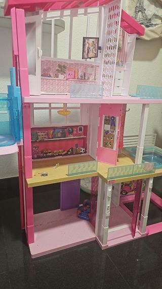 Esta icónica casa de muñecas Barbie Dreamhouse ofrece múltiples niveles de diversión. - Incluye accesorios para decorar. Faltan accesorios. - Diseño de varios pisos con habitaciones. - Colores vibrantes y detalles. - Ideal para horas de juego imaginativo.