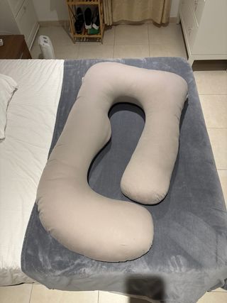 Cojín ergonómico en forma de U, ideal para embarazo y lactancia. Su diseño se adapta al cuerpo. Solo se utilizo para embarazo ya que al final le dimos biberón, no tiene manchas de leche ni restos como otros. s - Funda desmontable y lavable - Color gris. - Material suave al tacto. - se entrega recien lavado