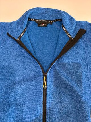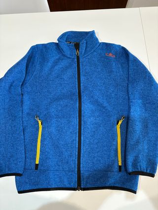 Forro polar azul CAMP para niño o niña de 12 años. Ideal para actividades al aire libre. - Cremallera completa. - Dos bolsillos laterales con cremallera amarilla. - Logo de CMP en naranja en el pecho.