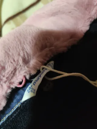Chaqueta vaquera para niña de 24 meses con forro interior de pelo sintético rosa. - Diseño vaquero. - Detalle de pelo sintético rosa en el cuello, se puede quitar - Cierre de botones.