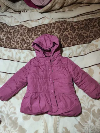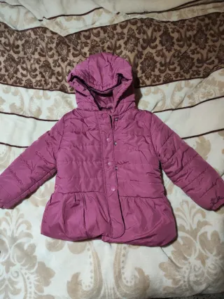 Chaqueta acolchada de color rosa para niña. - Talla 4/5 años. - Con capucha. - Cierre de cremallera frontal.