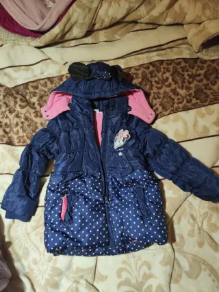 Chaqueta infantil azul marino con estampado de lunares blancos y detalles en rosa. - Capucha con orejas de Minnie. - Cierre de cremallera. - Bolsillos delanteros. - Diseño con Minnie Mouse.