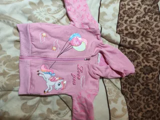 Conjunto de dos piezas para bebé de 3 meses. - Chaqueta rosita acolchada con botones. - Polaina rosa con pies incorporados.