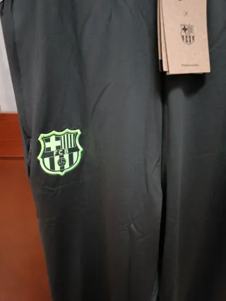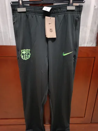 Pantalón deportivo del F.C Barcelona. - Color Gris oscuro - Logo del F.C Barcelona en la pierna izquierda. - Logo de Nike en la pierna derecha. - Cintura elástica.