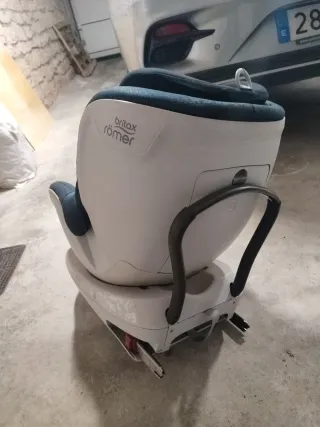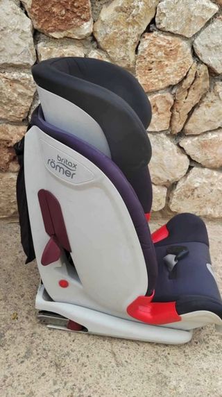 Silla de coche de la marca Britax Römer, diseñada para la seguridad y comodidad. - Tapicería azul oscuro. - Cinturón de seguridad de 5 puntos. - Reposacabezas ajustable. - Anclaje Isofix