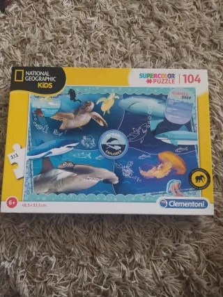 Puzzle de National Geographic Kids con temática del océano. - 104 piezas. - Incluye la imagen de Giants of the Deep. - Recomendado para mayores de 6 años. - Medidas: 48,5 x 33,5 cm.