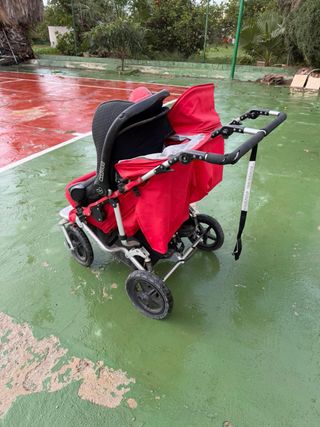 Carrito gemelar en color rojo, ideal para dos niños. - Estructura metálica. - Ruedas todoterreno. - Capota ajustable.
