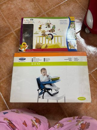 Práctica trona de viaje de la marca Jane, ideal para llevar a cualquier lugar. Es fácil de plegar y transportar. - Diseño plegable. - Apta para bebés. - Color azul y blanco. De regalo movil de cuna, no sé si funciona por eso lo doy de regalo