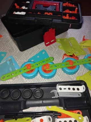 Set de construcción Build & Play con piezas para crear diferentes vehículos. - Incluye maletín de herramientas. - Advertencia: Contiene piezas pequeñas, no apto para menores de 3 años.