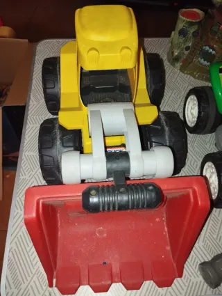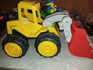 Divertida pala excavadora de juguete de color amarillo brillante, ideal para horas de juego. - Pala frontal roja. - Ruedas grandes y robustas.