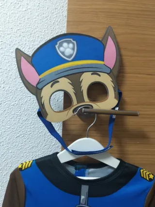 Disfraz del personaje Chase de la Patrulla Canina, ideal para fiestas o disfraces. - Talla 3-5 años. - Incluye máscara y guantes . - Diseño inspirado en el uniforme de policía.