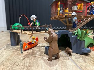 Fantástico set de Playmobil con una casa del árbol y varios accesorios. - Incluye figuras de exploradores y animales. - Cuenta con un vehículo todoterreno. - Dispone de una canoa y un muelle. - Accesorios de pesca y aventura.