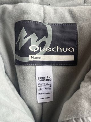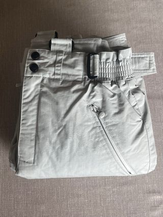 Pantalón de esquí para niño de 12 años. Ideal para disfrutar de la nieve con comodidad. Completamente nuevo! - Color gris claro. - Cintura ajustable con trabillas y cinturón. - Cierre de cremallera y botones. - Bolsillo lateral con cremallera.