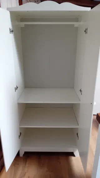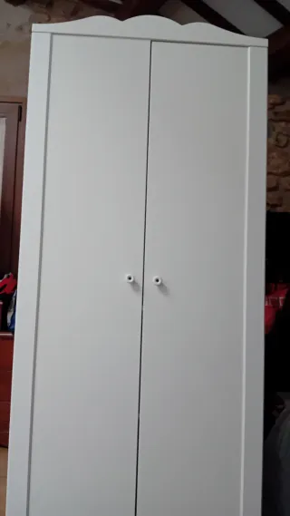 Armario infantil de dos puertas con tiradores redondos. - Diseño moderno y limpio. - Acabado en color blanco. Tengo 2 armarios y un mueble estantería Cado uno 50 €, 2 por 80 € y los 3 por 100 €